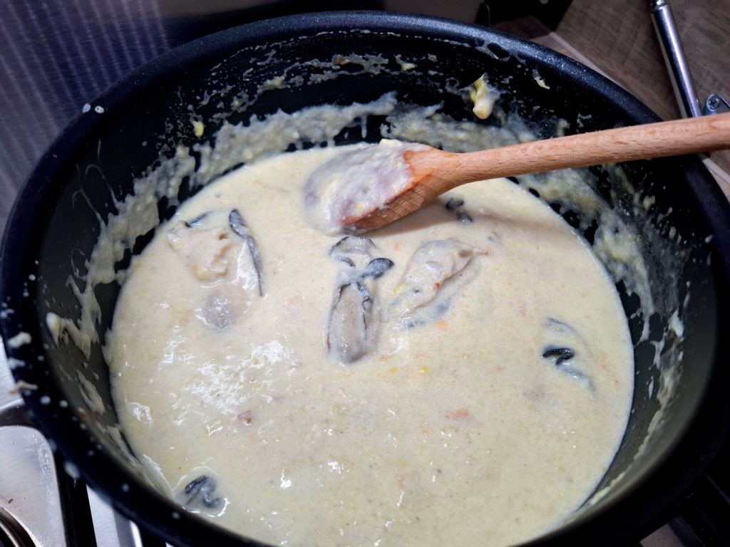 Ken is some kind of gastronome (now THAT’S a segue!!) Unbeknown to me, he had been eyeing off the oysters in Cockle Creek. While I was taking an explore out to the point, armed with a hammer and screwdriver, Ken was busily removing the local delicacies from their hiding place. Now, I’m not the expert here, but he assured that that they were truly magnificent specimens. After some serious schucking, there was enough for entree and oyster soup. Having a chef as travelling companion – I’m really getting to like it.