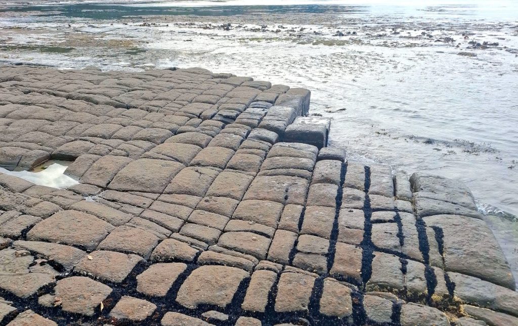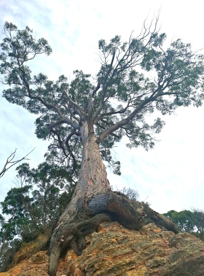 And as the add goes, “But wait, there’s more!” On the other side of Eaglehawk Neck is what’s known as Tessellated Pavement State Reserve. Tessellated Pavement is a rare geological formation, where natural erosion has created rock formations that resemble man-made tiles. Luckily we arrived at dead low tide and able to see and walk on this amazing site. An interesting sidelight was this enormous gum tree, clinging to dear life on the very edge of a small cliff. It looks like it could topple in the next stiff breeze, but a local I bumped said that it had been like that for the last thirty years.