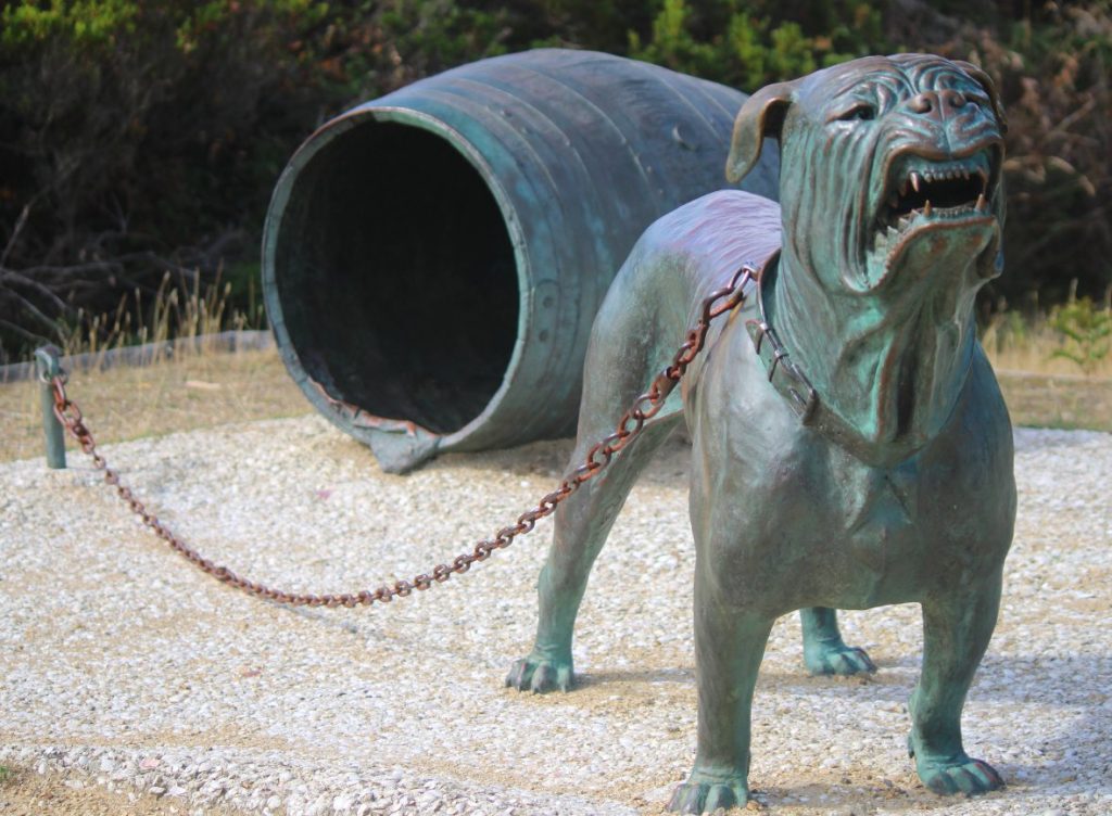 This is not the only attraction on the Tasman Peninsula. The next day we went exploring and discovered a few surprises. Port Arthur’s reach extended well beyond the settlement. Unlike Sarah Island, escape from Port Arthur was eminently possible but required negotiating a very narrow strip of land called Eaglehawk Neck. To guard against this, dogs and guards were strung out across Eaglehawk Neck. In reality, their bark was definitely worse than there bite, but sufficient to alert soldiers to any attempted escape.