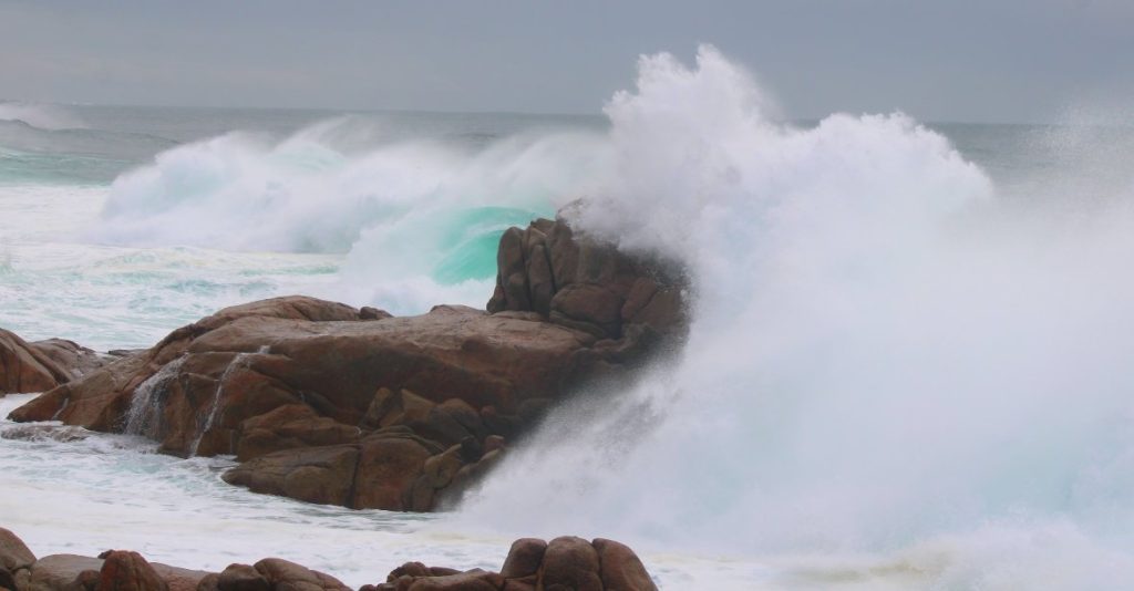So, here I was, alone again, naturally. Luckily, the little village across the bay had an internet tower and, to be honest, I needed some relief from Ken’s ‘punishing’ schedule. A mixture of blogging, sport and Netflix kept me pretty well content for the next two days. In between blustery showers, I’d walk out to the ocean and along the beach. The scene was wild and windswept, the skies, dark and threatening.