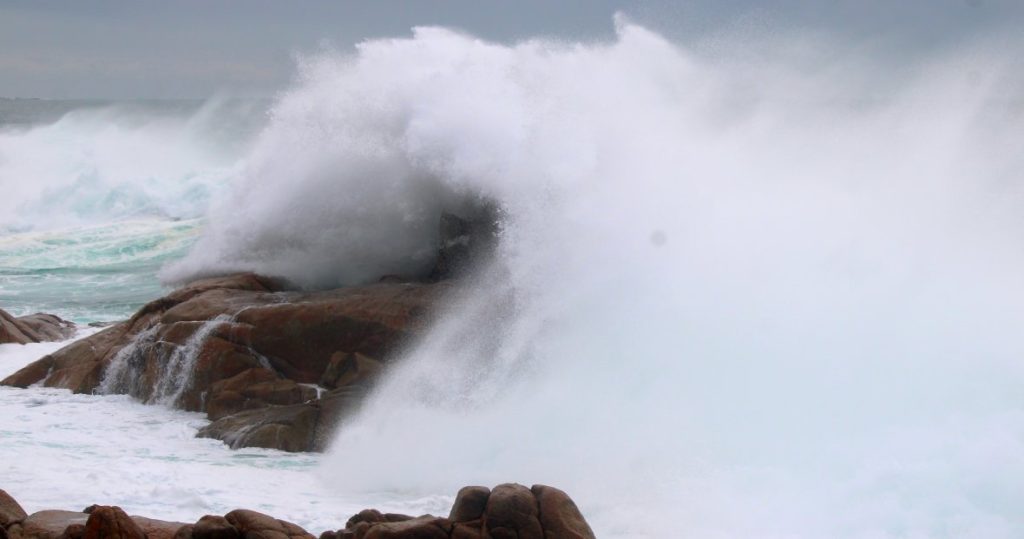 We left just after lunch to make another of Ken’s ‘chosen one’ locations, Policeman’s Point. But first an overnighter at Hillcrest Tourist Park just outside St Helens, for a recharge and water replenish. However we were being chased by a change in the weather. Strong winds being pushed by a large storm front were heading our way. Perhaps we should have taken ‘Hillcrest’ more literally before choosing our accommodation that night. Barely two hours after our setting up, the winds were roaring through the caravan park and our vans were rocking on their wheels. It continued all through the night, before the morning brought some respite, but the skies wear leaden.
