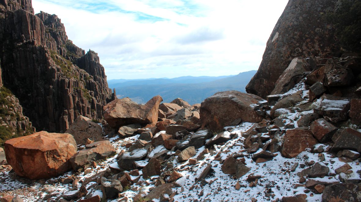 The north-east part of Tassie is pretty remote, so our stay here marked a return to some creature comforts like supermarkets, bakeries and internet. With the temperatures tumbling, the humble meat pie made a triumphant return to the menu. Our plans were vague for the next three days. I think maybe we thought that the adventure was over already. But a quick look at the map revealed Jacobs Ladder and the Ben Lomond plateau was just over an hour away. We’d both seen pictures of Jacobs Ladder but had no idea what to expect. ‘Ladder’ is a metaphor for a tight windy ascent up to the Ben Lomond plateau, that, depending on the weather, can be benign or treacherous.