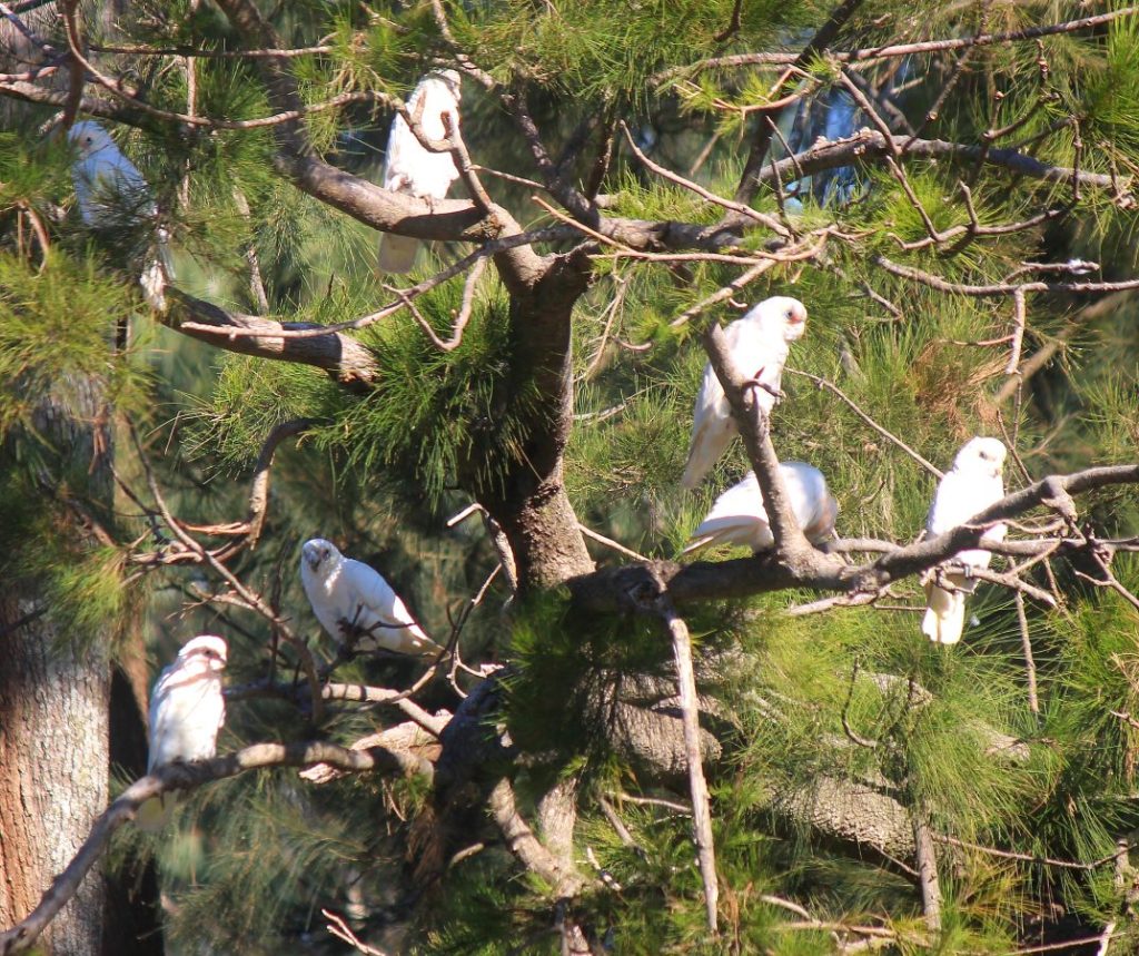 Squadrons of white cockatoos would skim the river and their cries were, well, loud and often. No wake-up alarm need here of a morning, but thankfully, they disappeared around sundown.