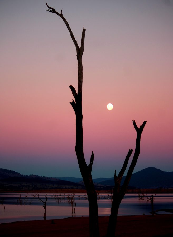 Polling day done, a few days later, I was leaving Victoria for possibly the last time (don’t ask) and heading for a lakeside camp just past Bowna Waters Reserve, about 15klm north of Albury. I stayed there overnight last year and this time, for a few days, to soak up the tranquillity and burn some wood. Lake Hume had receded alarmingly since my last visit, but still enough for the bird life and the odd fisherman to try their luck. I pulled a few rocks together for a fireplace. I fired up late the next afternoon, putting on some chillaxin’ music, and, like an ice pack on a bruise, the serenity lifted my mood.