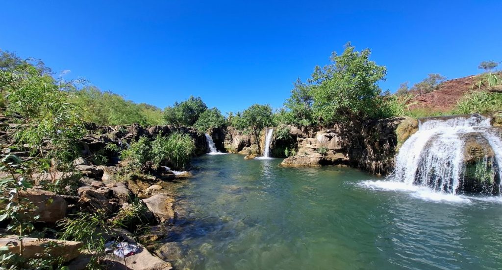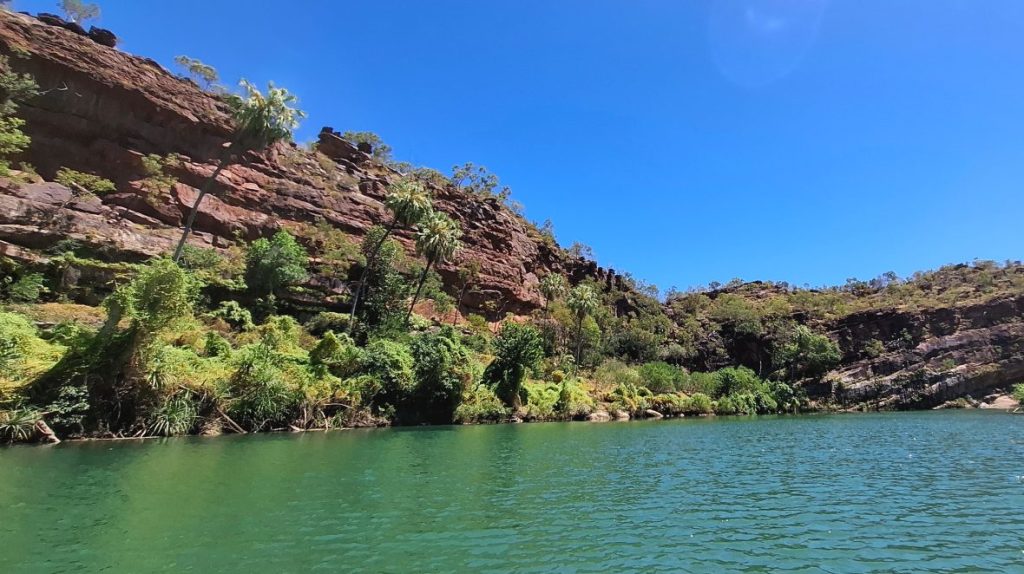 Sometimes you know what to expect. Sometimes you just want to be surprised. As for Boodjamulla and the Indarri Falls, surprise doesn’t even come close. We’d pre-booked a canoe at Adele Grove and picked up the oars and life jackets at reception just after 8:30am. Lawn Hill Gorge was only 10klms further on and it was a help yourself to a canoe when we arrived. The devastating 2023 floods had wiped out all the facilities at Boodjamulla and even two years on, not close to re-opening. It didn’t take much paddling to have the life jackets off and even at this hour we were hugging the shady side of the gorge.