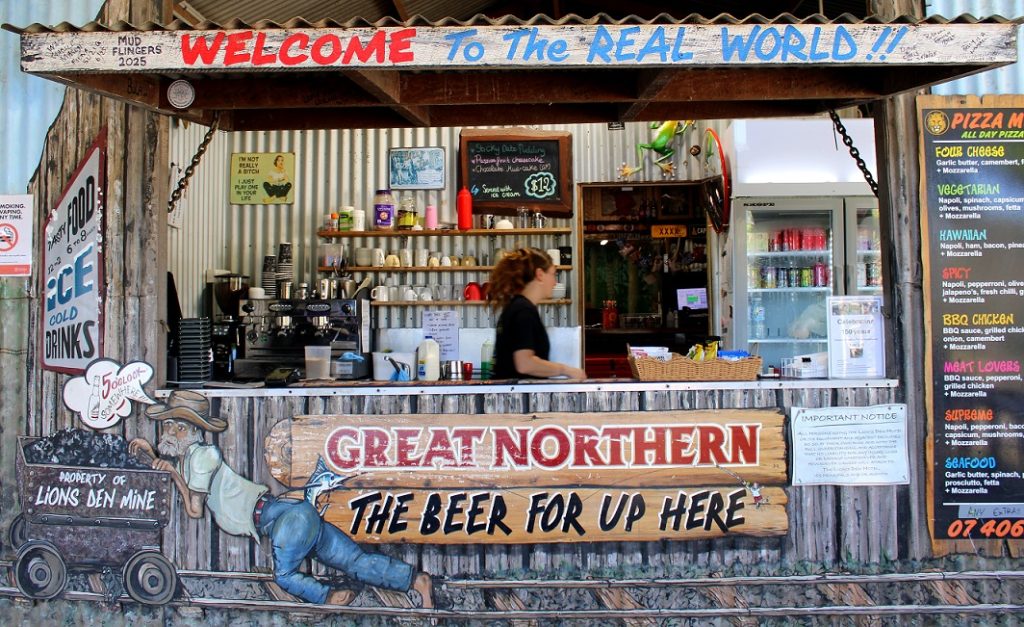 We had been pitched that The Lions Den served the best pizzas in the universe and was just outside Cooktown. Well, never stand between Ken and gourmet food they told me, so a couple of hours later, there we were.