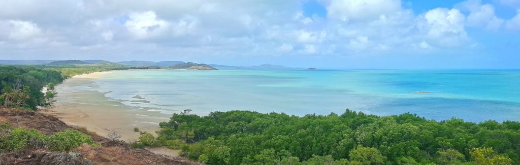 Well, today’s the day. Just over 30klms to go. We saw the cape from Loyalty Beach when we arrived. There was no way we weren’t going to make it our first order of business the next day. Up till this moment, the landscape had been pretty much open savannah or sub-tropical woodlands (pandanus palms and gum trees). We had barely left the caravan park and the canopy started to close in over our heads.