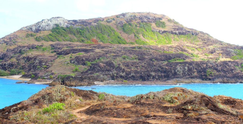 One of those all-terrain 20 seater buses had beaten us to it, not to mention the fifty or so tourists who had been zodiaked off a nearby cruise ship. It wasn’t planned, but the low tide made for an walk around to the tip an easy option to clambering the walking track over the last ridge.
