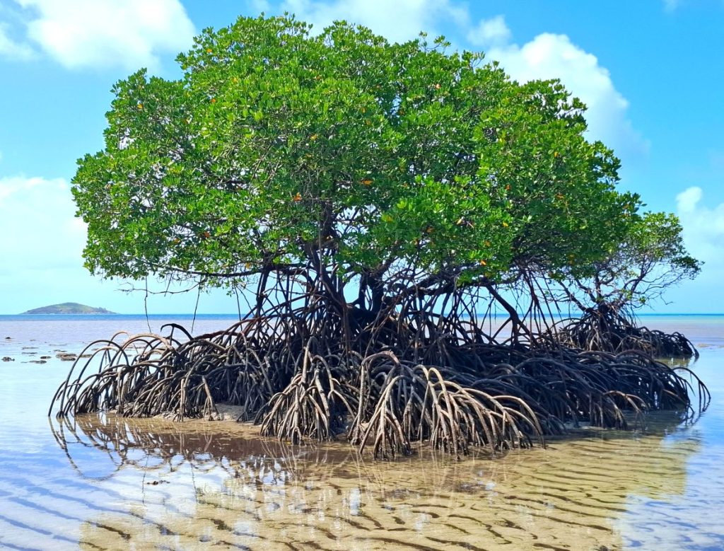 The tides were the best part of a metre. Only the branches of this mangrove remained above the high water mark. The next morning we decided to take the short run to Chilli Beach – just to see for ourselves what all the fuss was about. The dirt road was enveloped by rainforest, the beach hidden in plain sight. It was only as we stepped onto the sand that it all made sense.