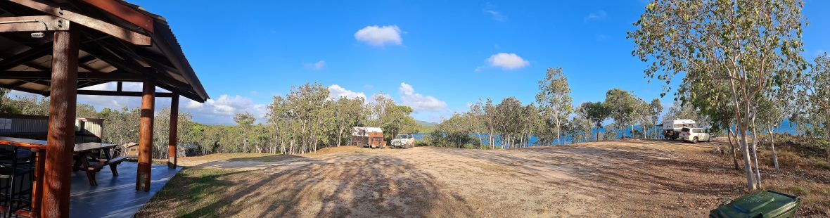 The winds had been strong for a couple of days and Chilli Beach had a reputation as the windiest paradise on the planet. The plan was to take shelter at a farm stay on the lee side of Cape Weymouth and avoid them. Well, that was the plan. Cape Weymouth Camping and Cabins was about as high up as the Cape itself. The views were stunning and as it turned out, the cool winds off the ocean kept us reasonably comfortable, especially at night.