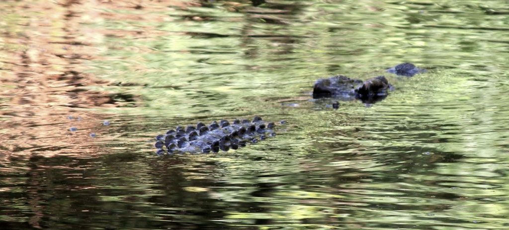 In the meantime, the fish had escaped from the hook and there was a flurry of movement to get my foot back on him, still oblivious to the danger a few feet behind me. Ken was gone for a long time. He saw the croc on his way back down, it’s head in my direction just a couple of feet from the bank. Luckily, in the croc’s mind, two against one was not a fair fight. By the time I swung around, so to had the croc, and he slunk away to the middle of the lagoon and slipped silently underneath the surface. All the ‘activity’ had ceased, the water was still, just silence.